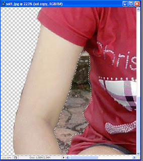 kemudian klik kanan pada area seleksi dan klik Make Selection.Setelah area terseleksi sekarang mari kita delete bagian backgroundnya caranya dengan klik Select > Inverse atau Ctrl+Shift+I kemudian tekan Delete.